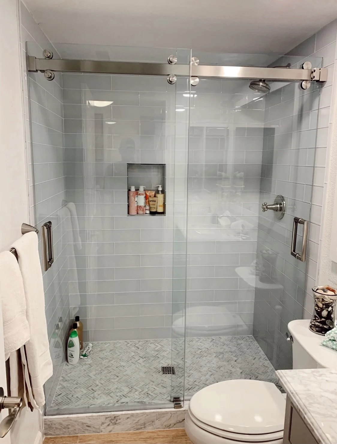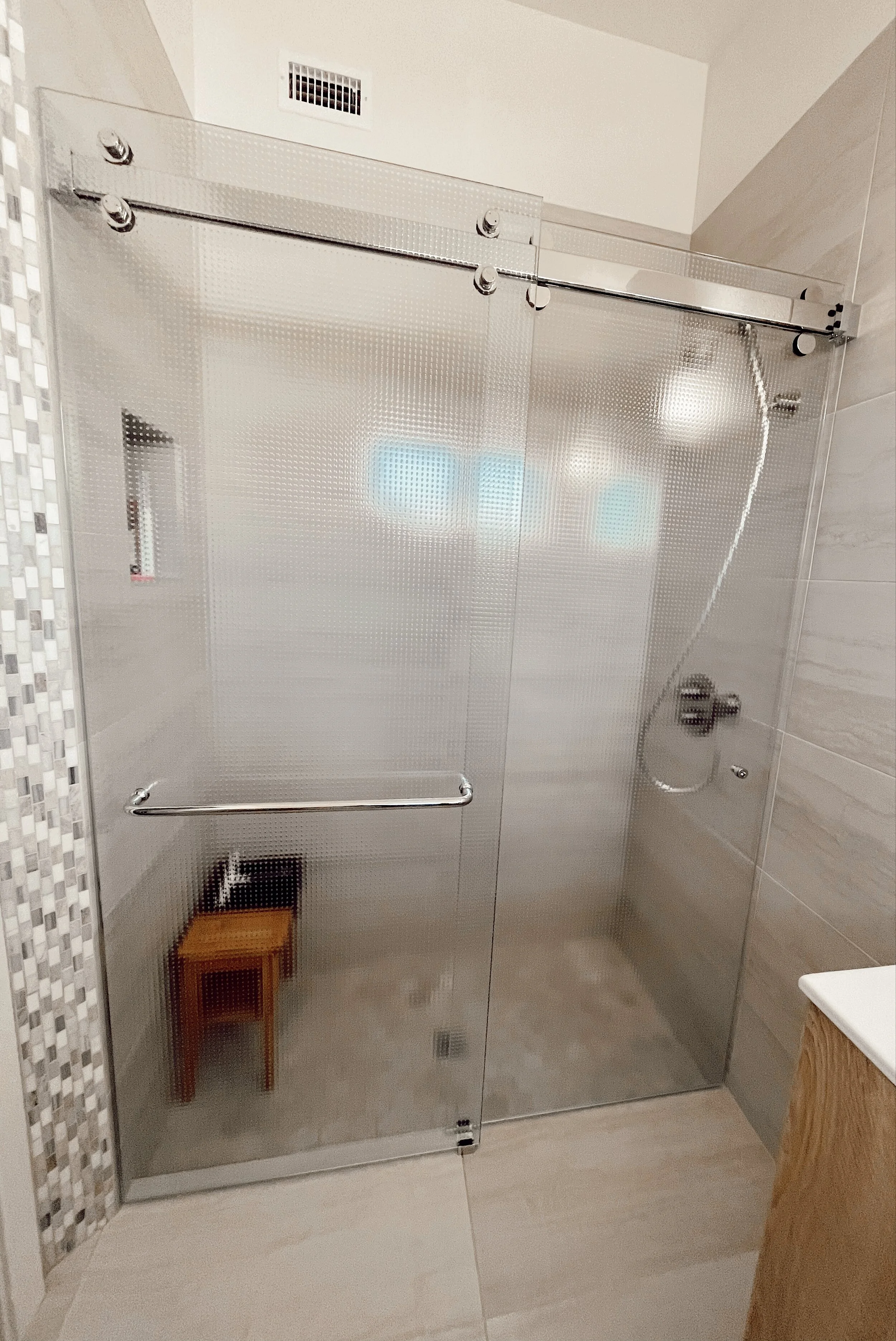 All showers are customized to your opening. This is THE FIRST dual slider meaning BOTH sides/doors open.