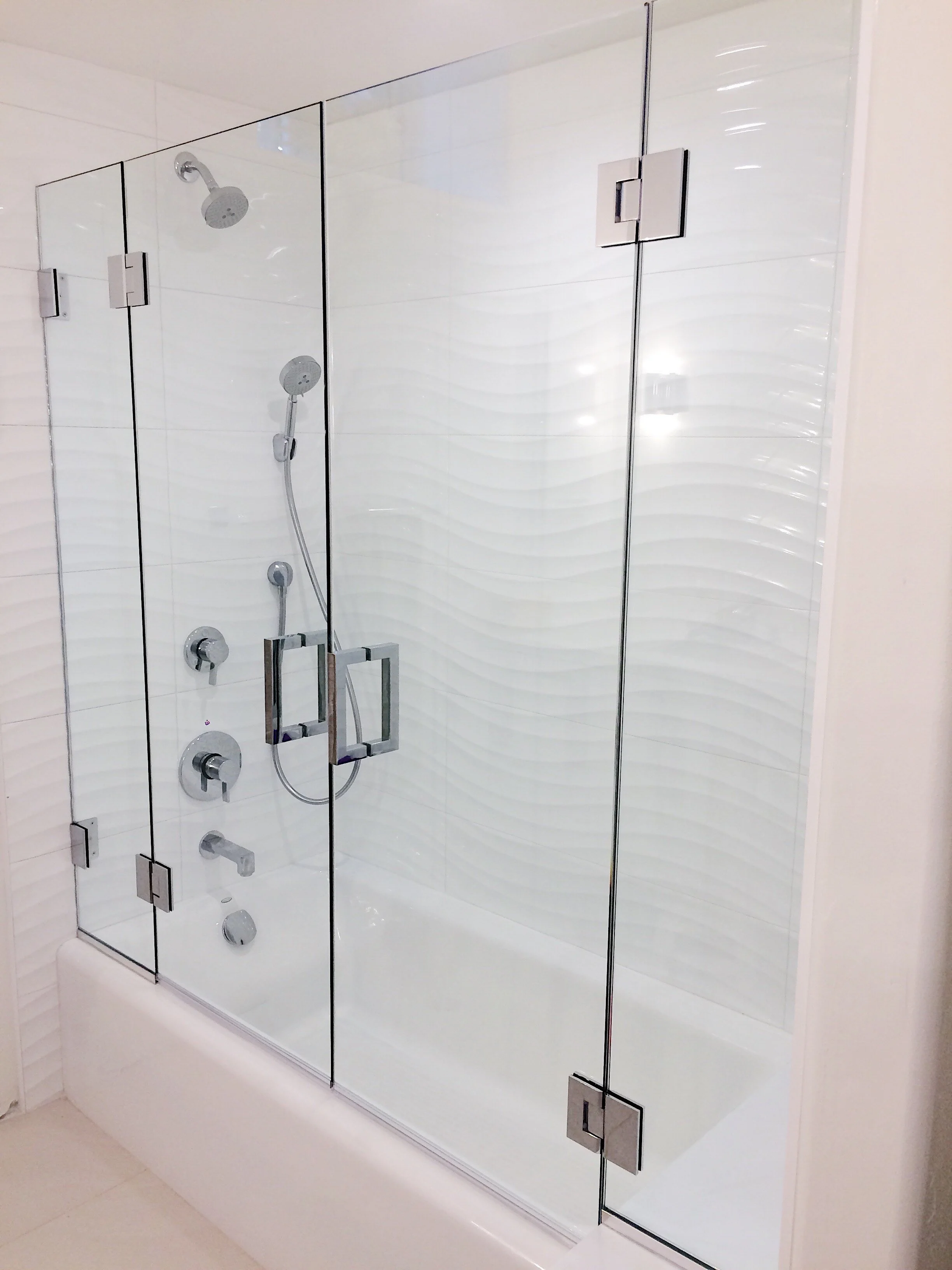 Frameless Enclosures come in (2) options regarding fixed glass. They can be installed using,