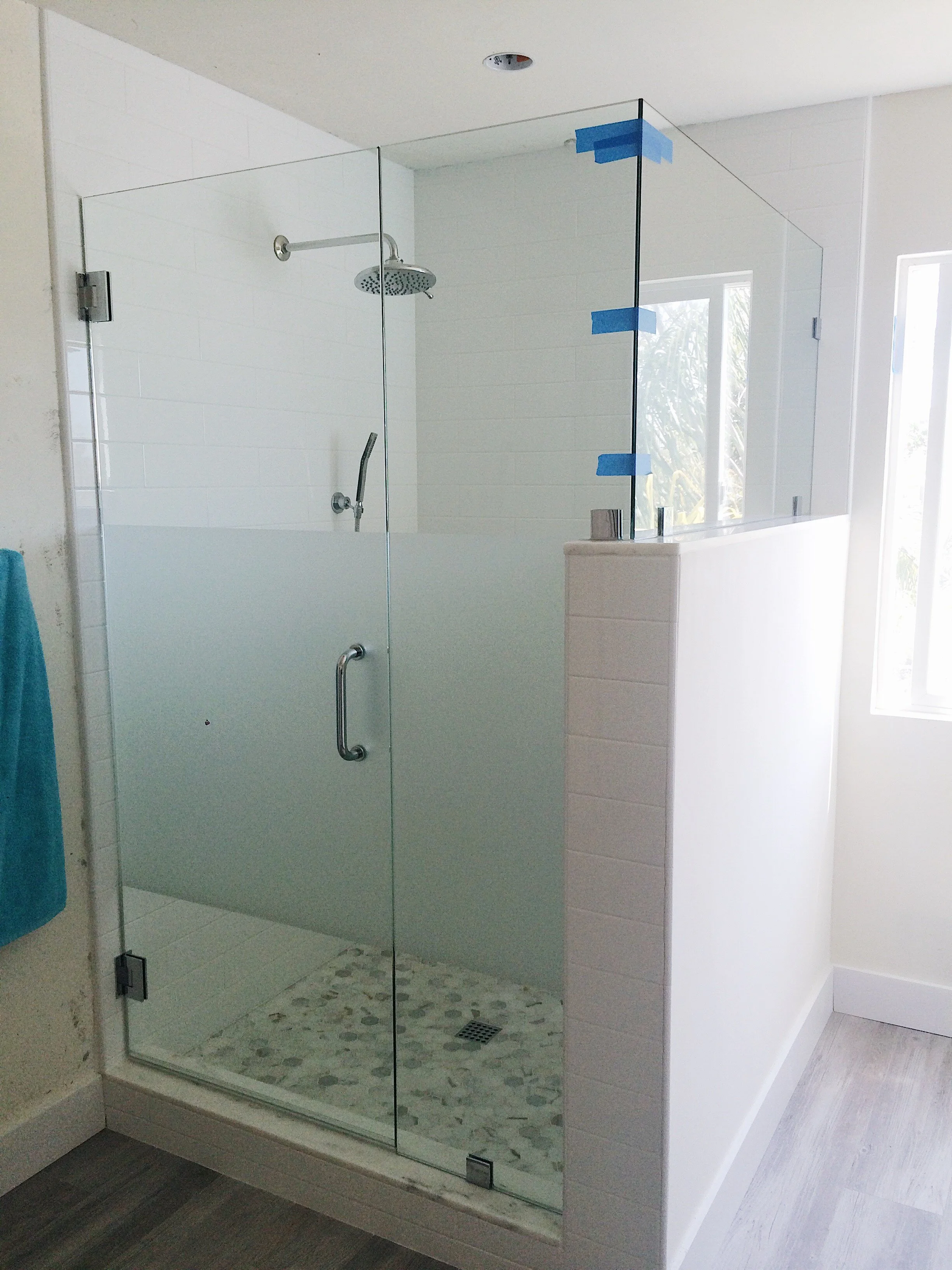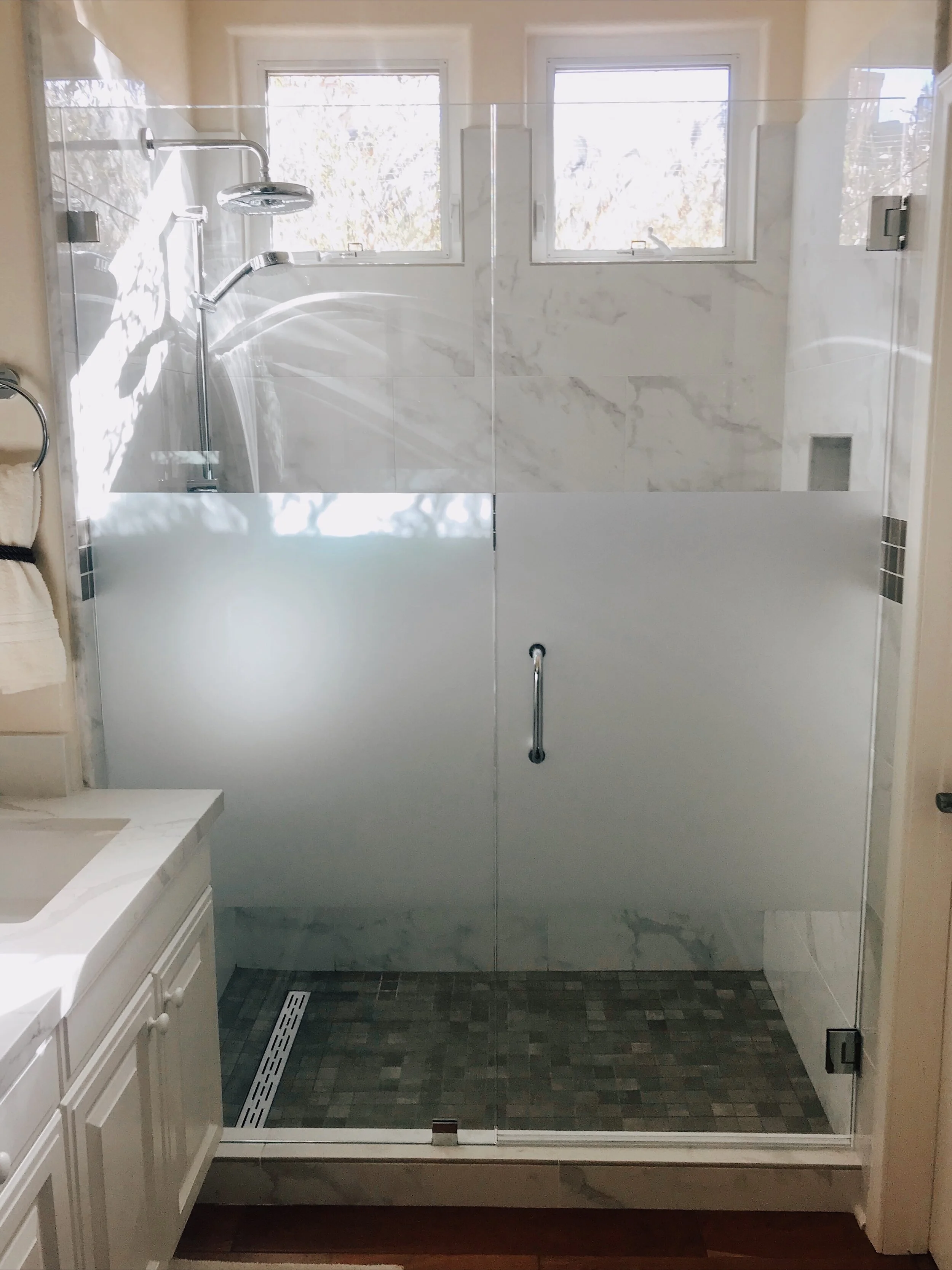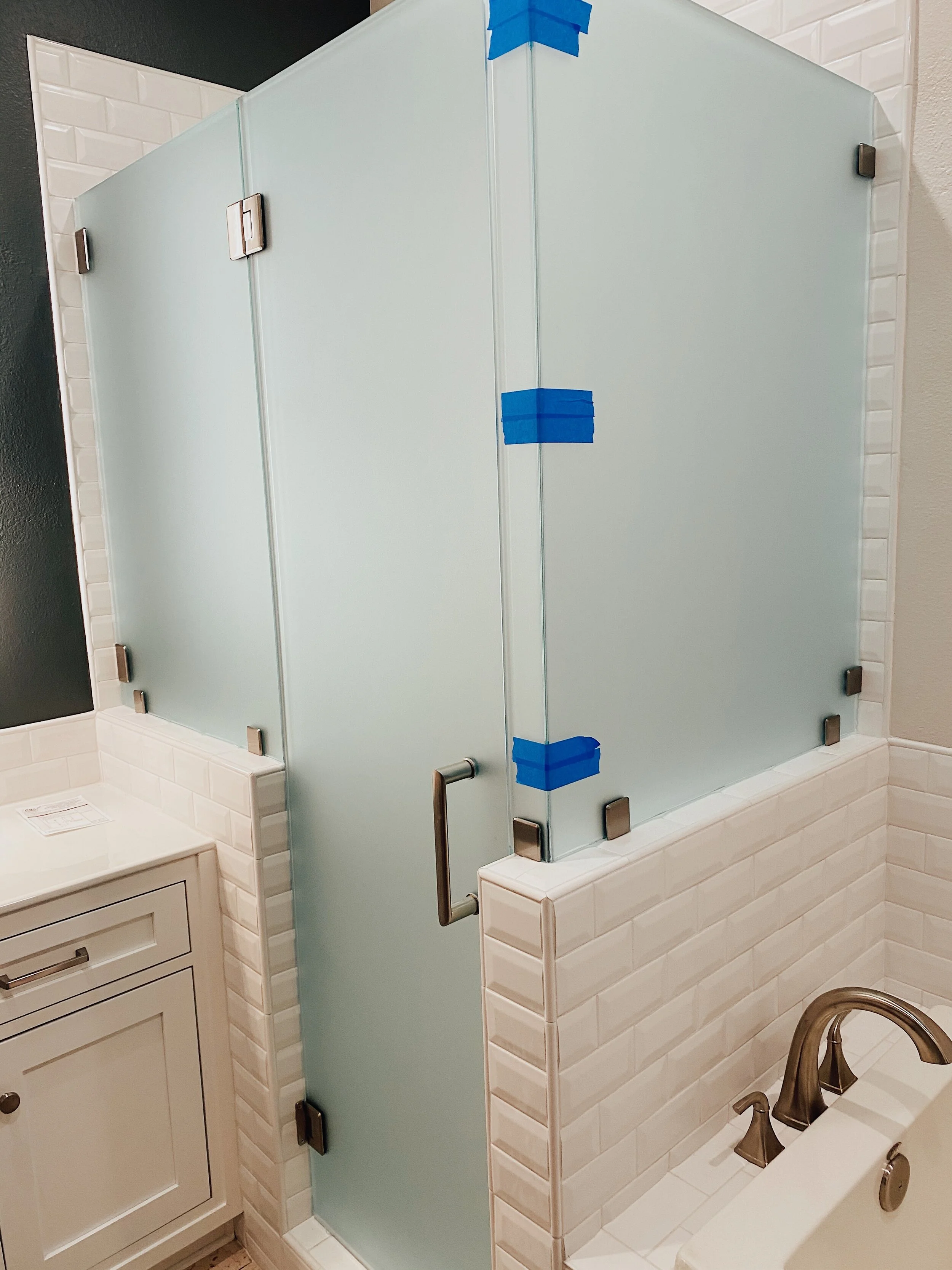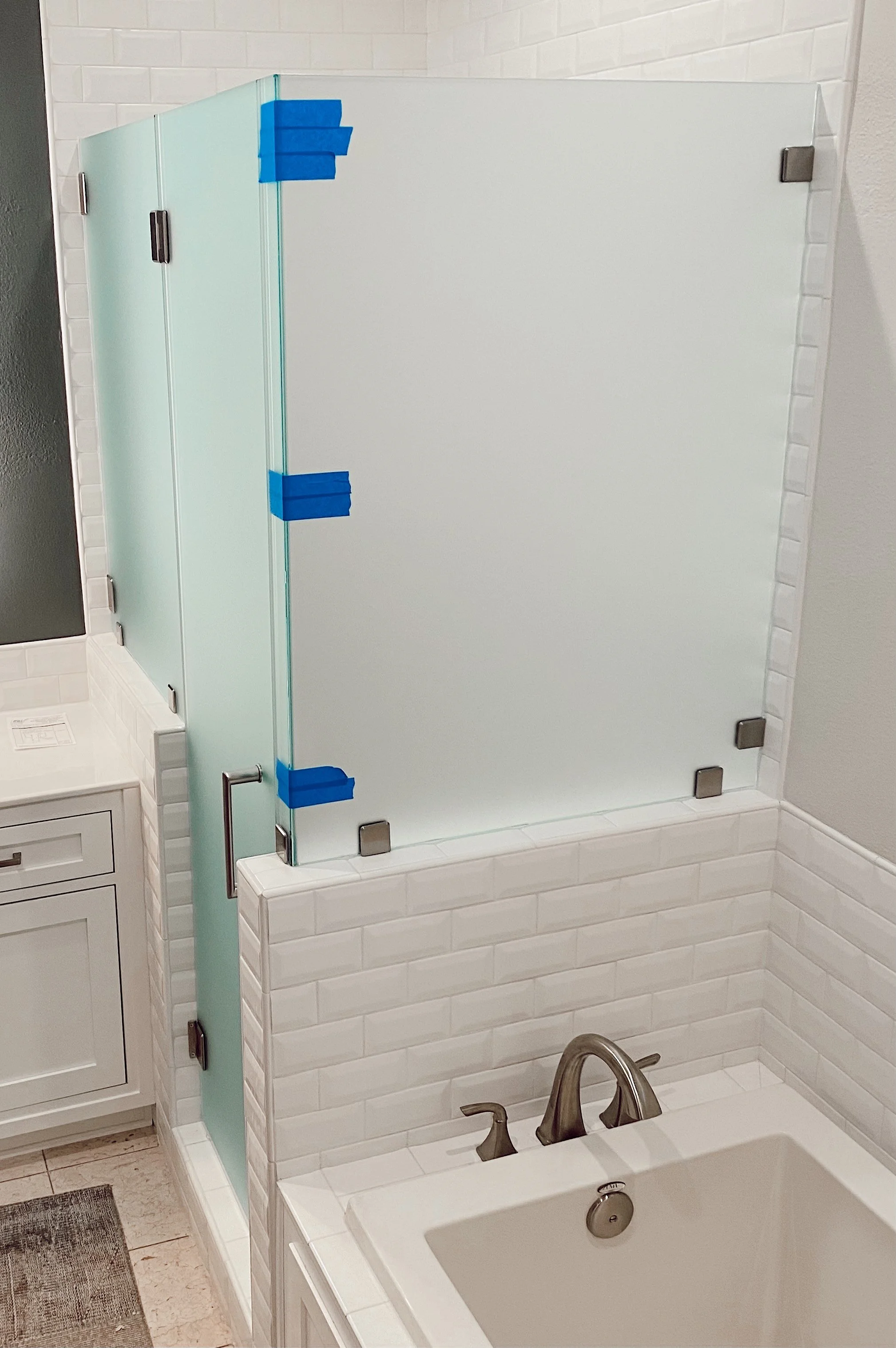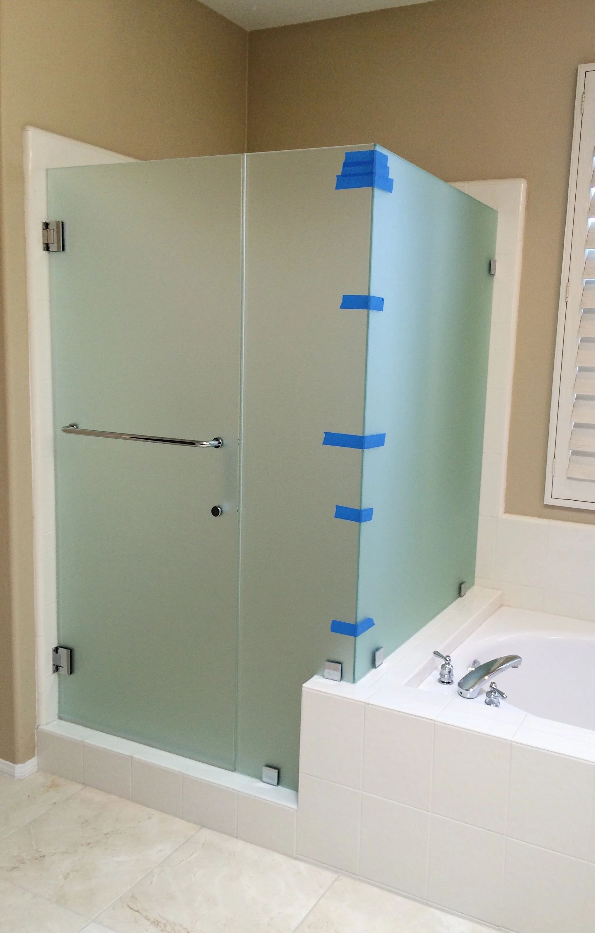 It all begins with an idea. This is just an example of an outline for a single sandblasted strip on a shower. This is not the only design we offer. You can do multiple lines. Lines that only come half way, thin lines, thick lines or even a design. Whatever it is we can help.