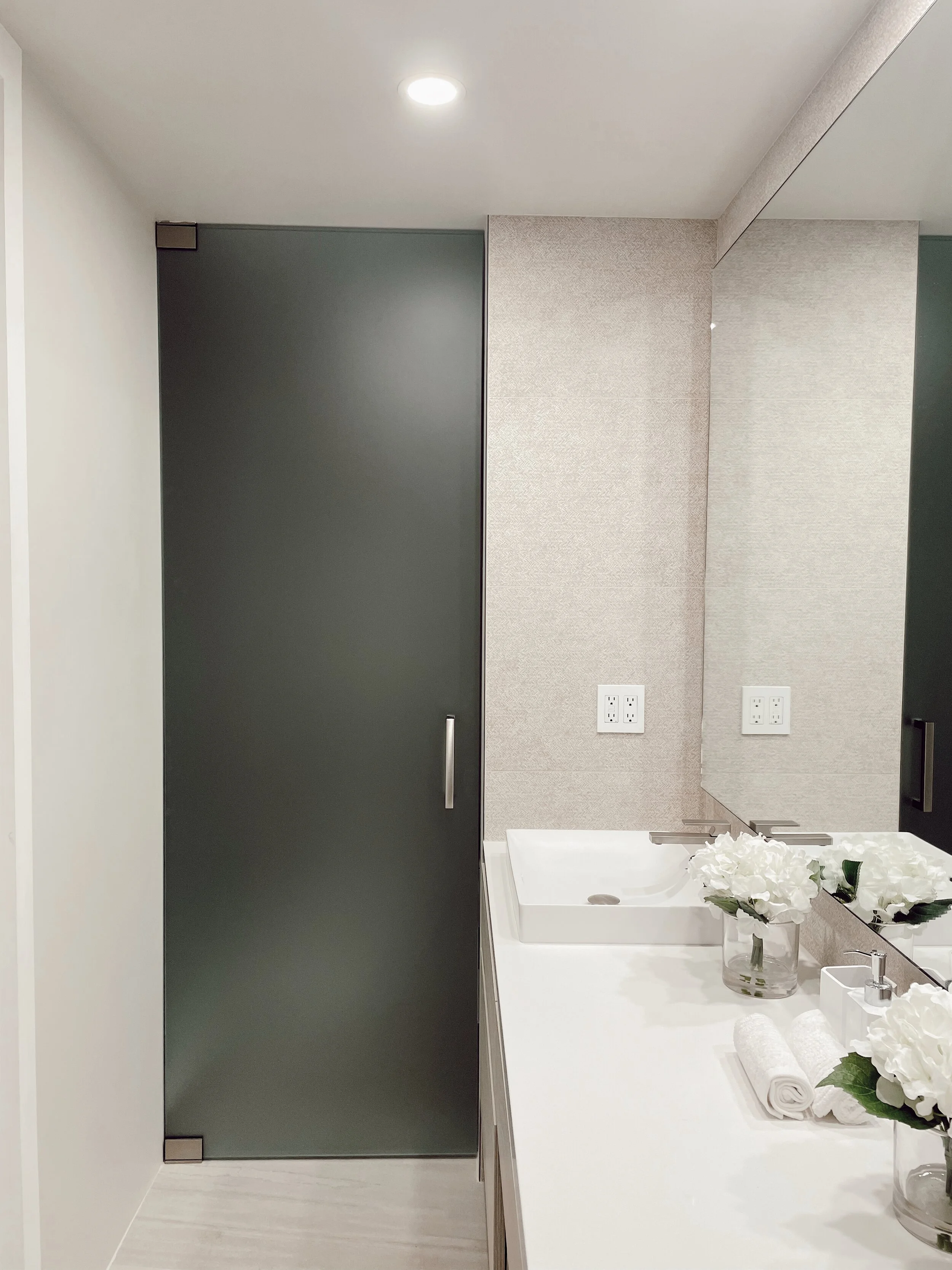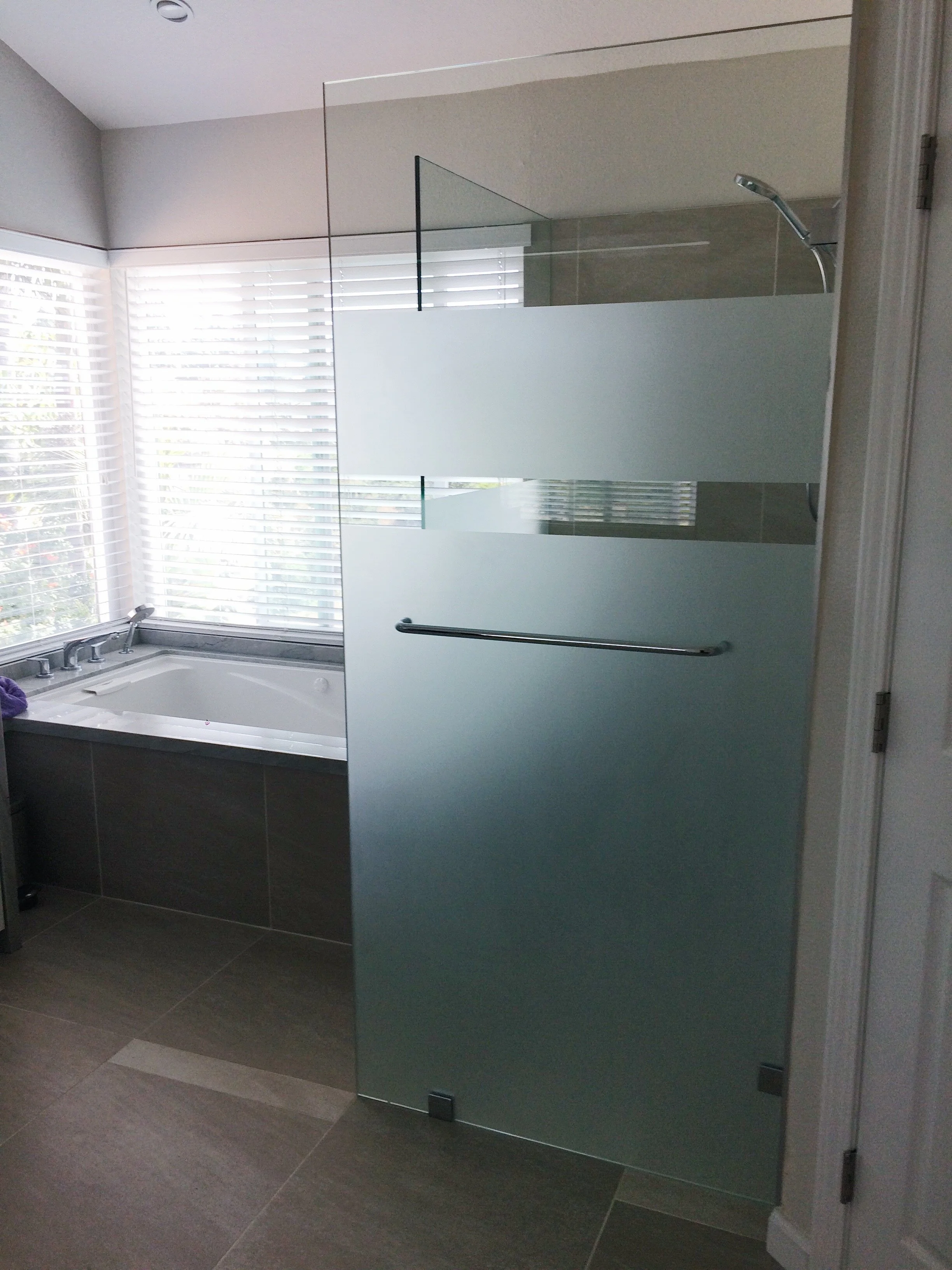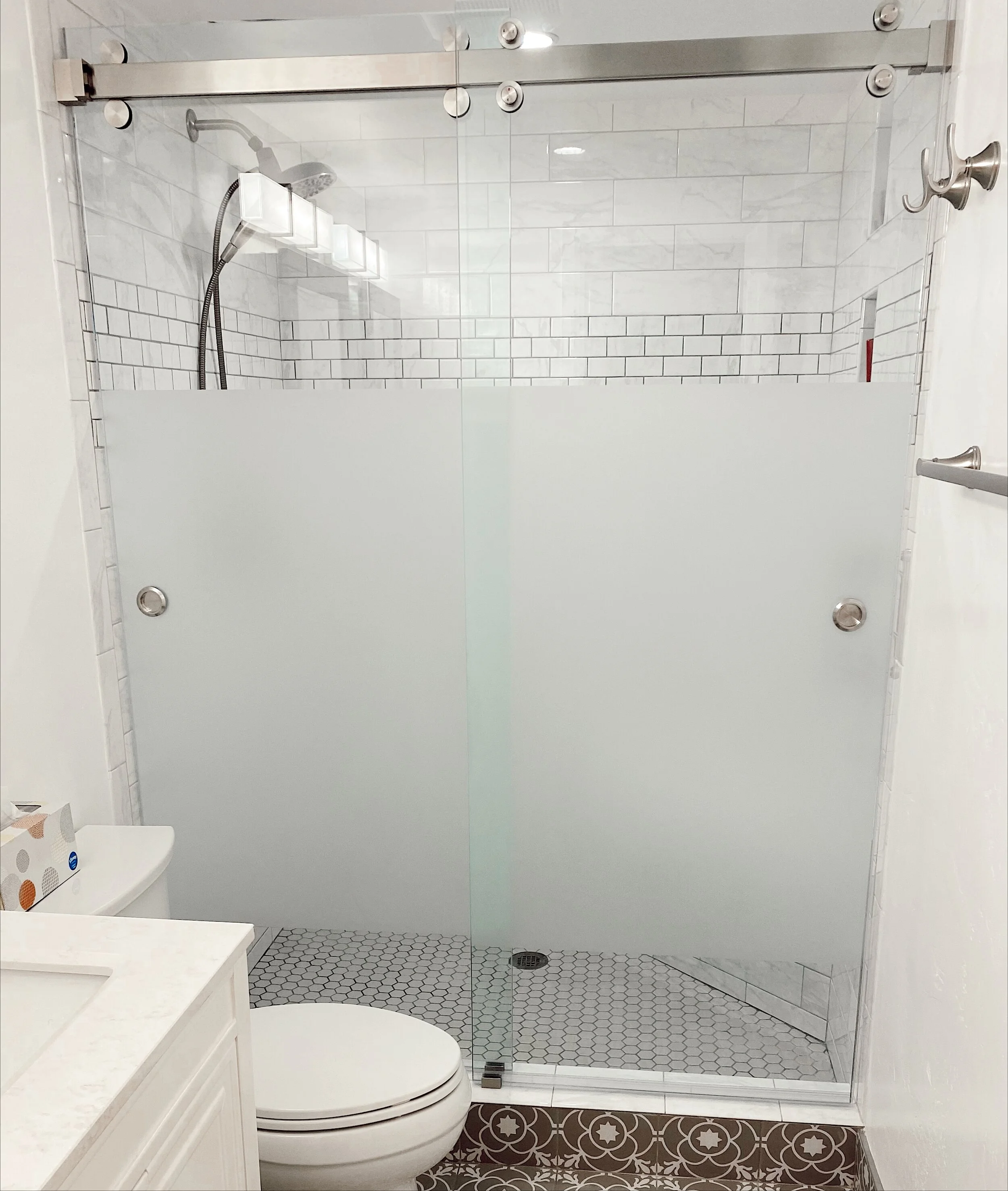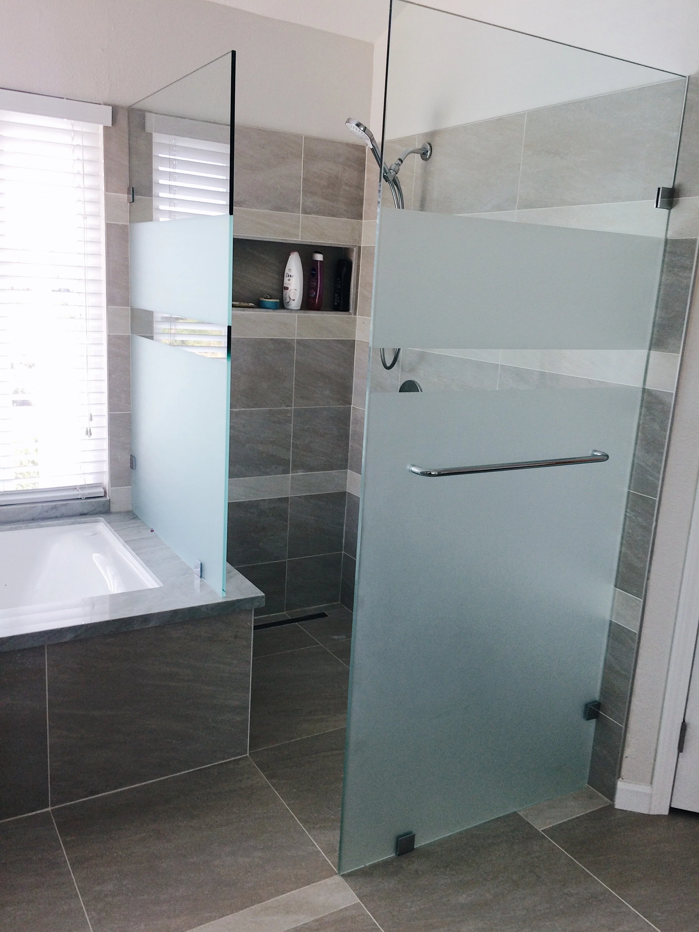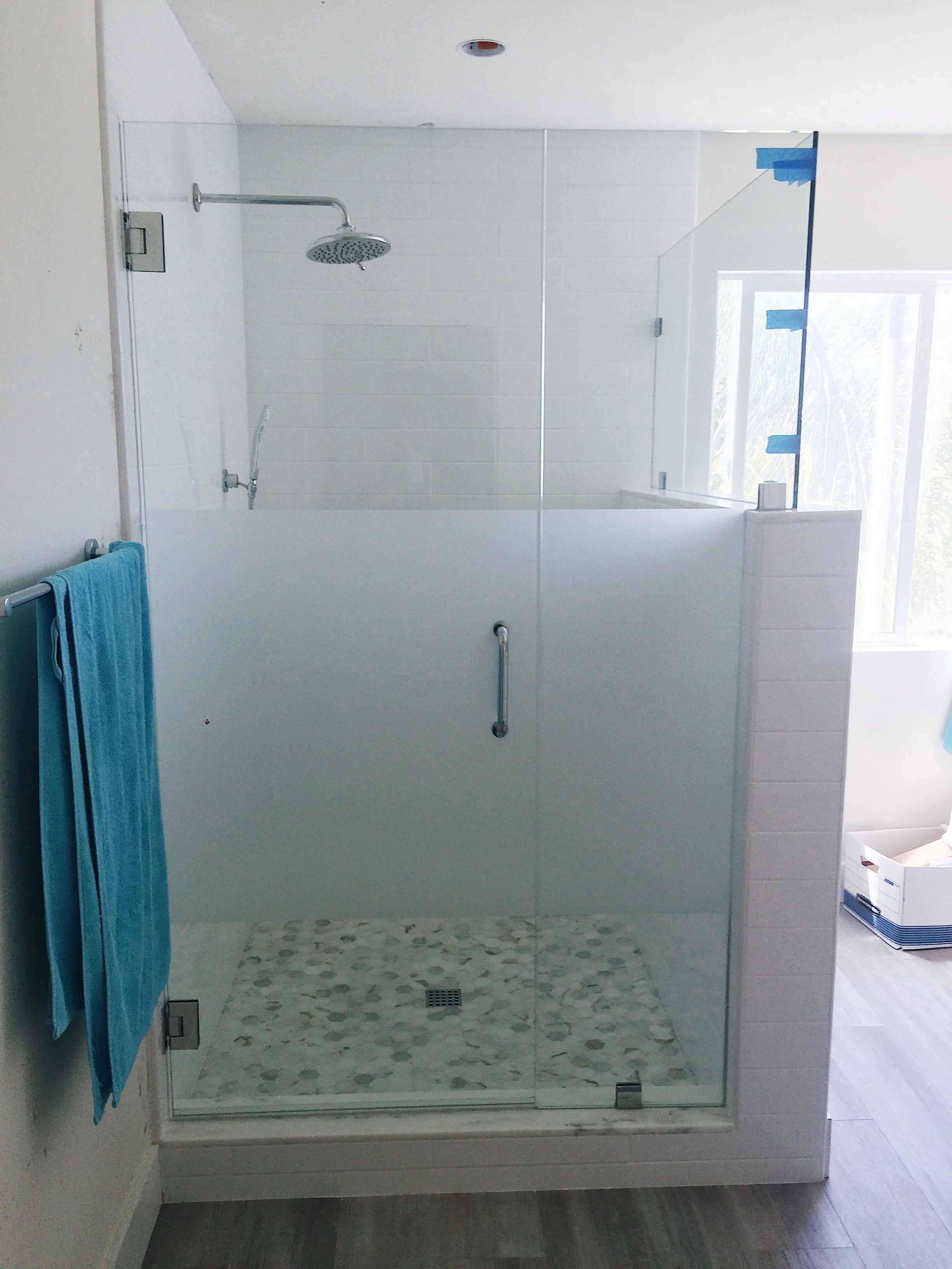 It all begins with an idea. This is just an example of an outline for a single sandblasted strip on a shower. This is not the only design we offer. You can do multiple lines. Lines that only come half way, thin lines, thick lines or even a design. Whatever it is we can help.